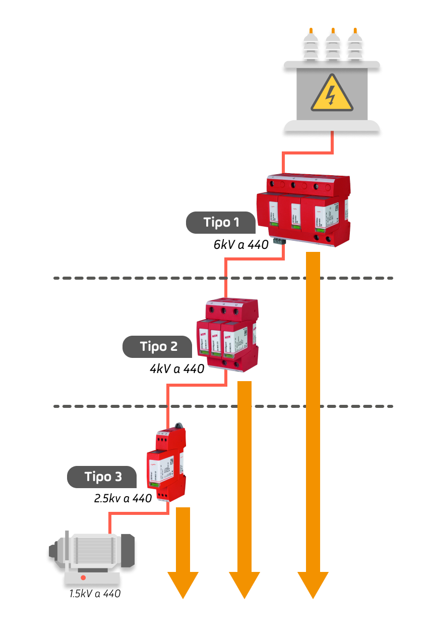 Para proteger los equipos contra transitorios causados por descargas atmosféricas se implementan Dispositivos de Protección contra Sobretensión (DPS) según la norma IEC_61643-11, los cuales limitan la magnitud de la sobretensión a la establecida por la IEC_60364-4-443.